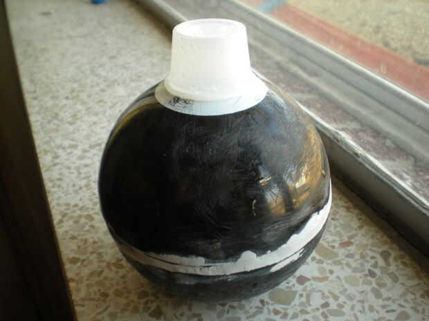 Pegar la taza de wasabi a la parte inferior de la bola 8.