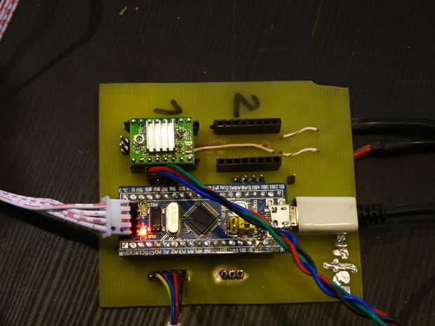 Como se puede ver en las fotos, hemos desarrollado una tabla para colocar STM32 y a4988 controladores paso a paso.