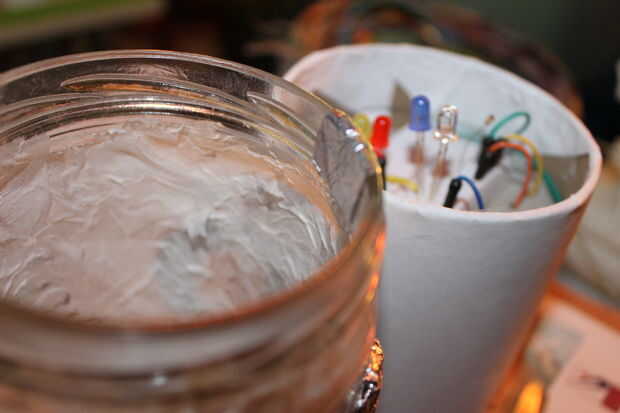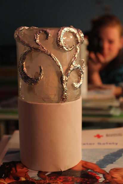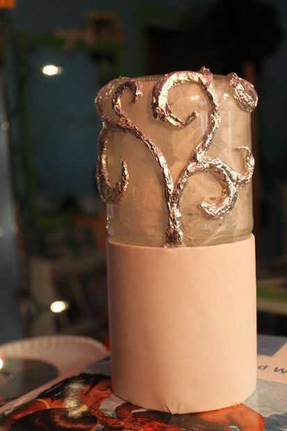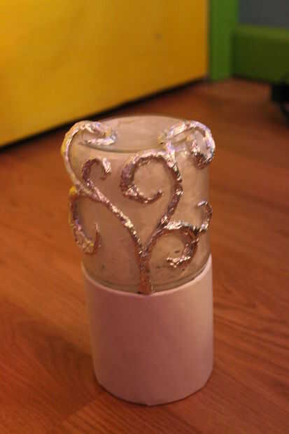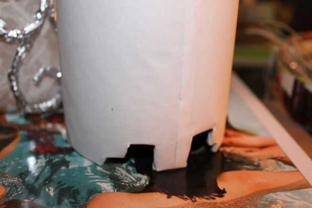 Para crear el árbol, arrancaron la hoja en tiras delgadas, de una pulgada de ancho y rodado entre mis Palmas en "cables". Yo entonces caliente había pegado abajo sobre el vaso. Para que sea más amplia en lugares sólo pegué varios de ellos justo al lado de uno al otro. Luego para hacerlo aparecer lisa en la parte superior, fino secciones con pegamento caliente de la capa y pulse sobre un pequeño pedazo plano de papel. Usé mi uña marcar alrededor de los extremos y lágrima de exceso.