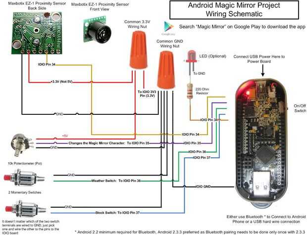 3. Inicie la aplicación Magic Mirror, vaya a configuración, Bluetooth y Bluetooth par a la Junta IOIO utilizando código: 4545.