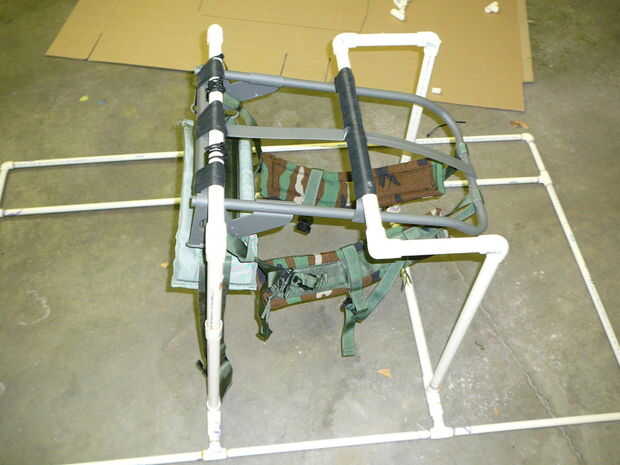 Después de despedir algunas ideas alrededor de la noche a la mañana que he decidido que una nueva idea puede ser la mejor solución, pero que no es una opción ya que tengo dinero/tiempo en esta configuración. Decidí ir a comprar algún ángulo de aluminio de Tractor Supply (era mucho más barato que Home Depot o Lowes) y utilice para apoyar cosas. Pongo en cuatro diagonales. Uno de cada esquina en el bastidor de la mochila y también une el aluminio a los tubos que conectan el marco pared y mochila. Sólo usé cinta aislante para esto también.