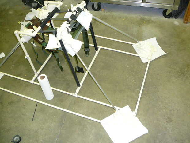 Cuando finalmente conseguí cosas todos pegadas lo probé. Mientras funcionó, había problemas. Como había temido, el tubo no era casi bastante rígido y había un montón de sag en el sistema. Estaba sin todo el peso extra que queda por agregar, claramente que esto no va a funcionar.
