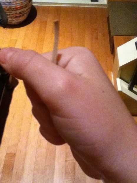 Tiene la goma rota alrededor de una pulgada de su mano, mientras que el resto es todo enrollado en la mano.