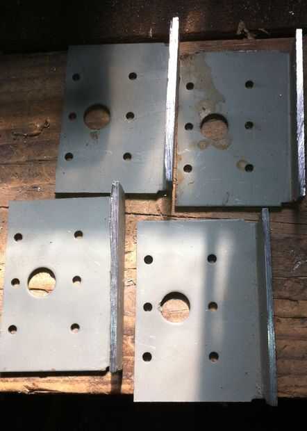 • Cortar cuatro cuadro de esquinas de hierro # 5 de dos anclajes de concreto...