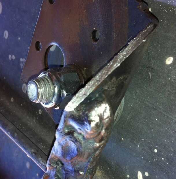 y una arandela de seguridad bajo un nylock del lado del hilo a través del orificio de 3/8".