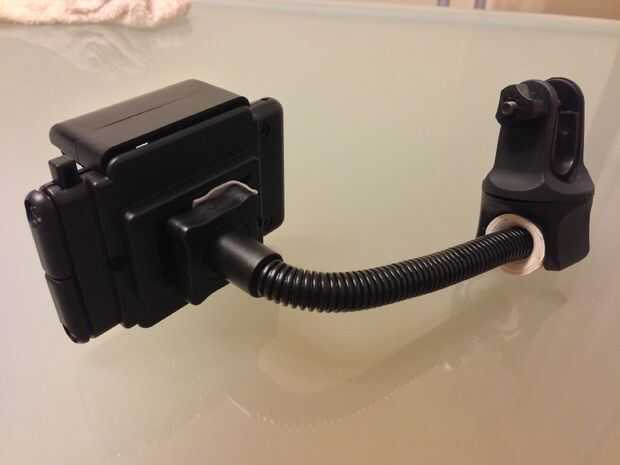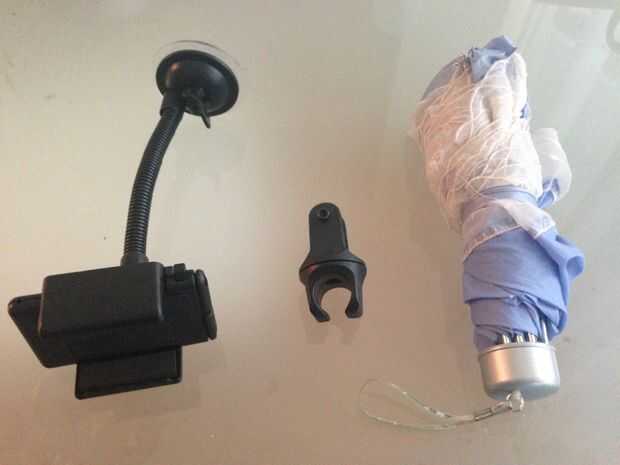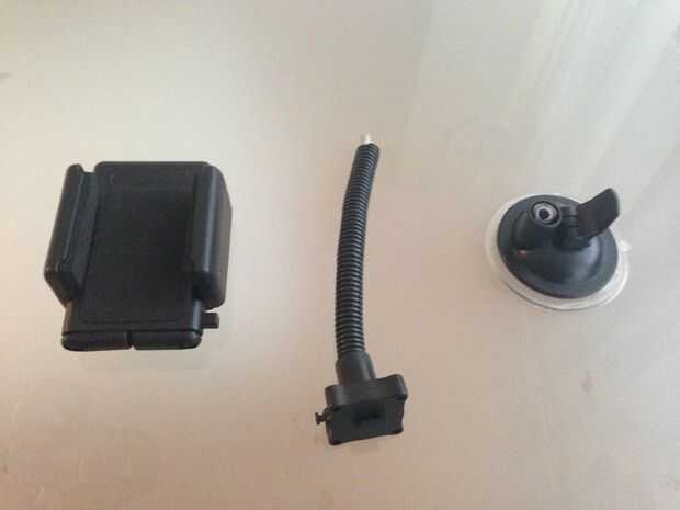 Desmontar el soporte para teléfono celular en tres piezas de agarre de cuna, cuello de ganso y ventosa. No necesitamos la ventosa.