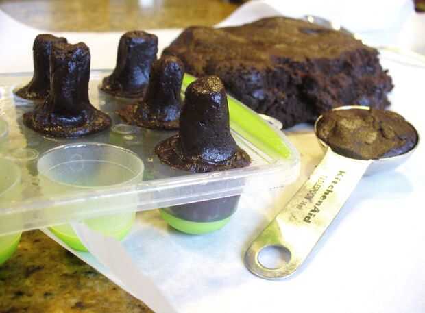 ¿Ver lindo poco hielo bandeja molde que encontré en la tienda de comestibles? Tiene una punta flexible agradable en la parte inferior de cada pequeño cubo de hielo, que hace más fácil hacer estallar la masa trufa cuando termines. Si tienes una bandeja de cubos de hielo como estas cosas a uno, cada uno poco de hielo cubo con 1 cucharada de pasta de trufa y prensa/tire con los dedos para moldear la masa sobrante en forma de tallo.