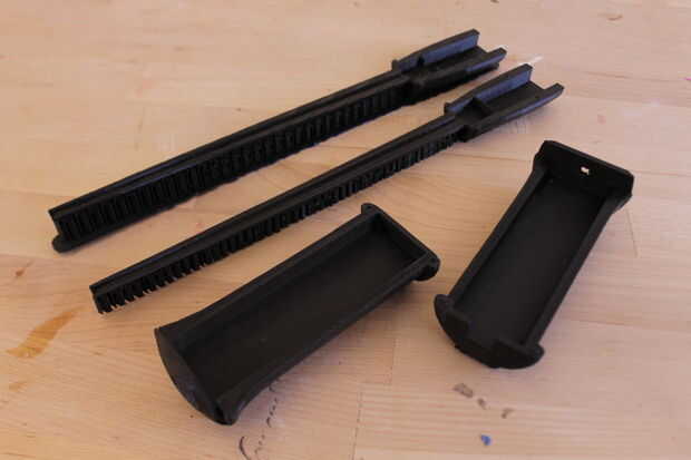 Imprimí estos modelos en una impresora 3D Makerbot Replicator 2. Los archivos TopLong.stl y BottomLong.stl no caben a lo largo de la placa de construcción, pero cabe diagonalmente a través de.
