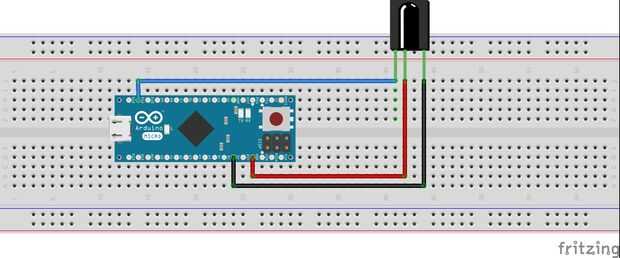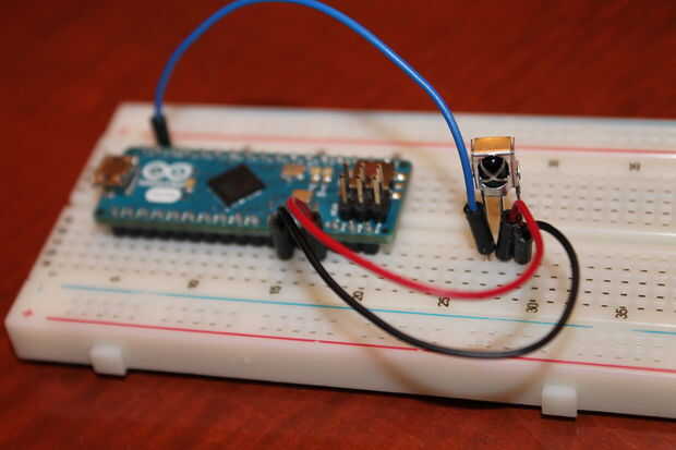 Vamos a empezar! Lo primero que tienes que hacer es configurar el Arduino Micro para se une a su receptor infrarrojo utilizando un protoboard y puente los cables. Los pines que necesitas conectar están la siguiente: