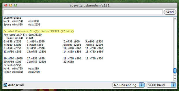 Si se presiona un botón en su control remoto y leer el nombre de protocolo 'Decoded desconocido', tratar de presionado el botón durante varios segundos para ver si aparece un nombre diferente. 'Decoded desconocido' generalmente se empareja con código de función 0 y 0 bits, así que no seréis capaces de retransmitir esta información.