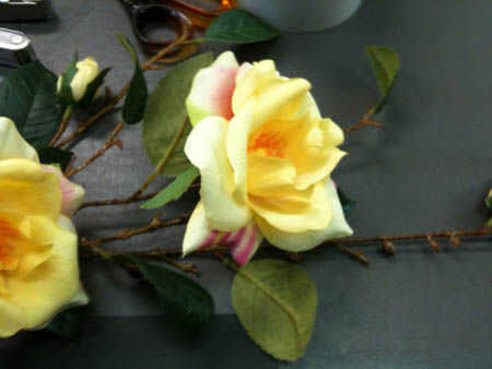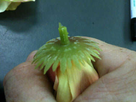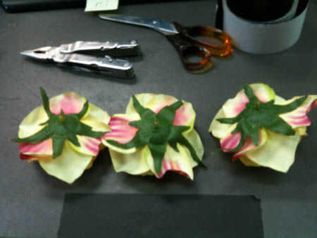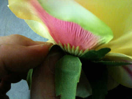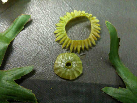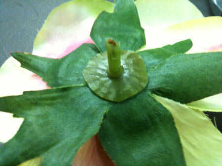 poner las hojas en la poco espesas y luego el sujetador (7) para hacer una flor entera otra vez, pero con el cierre y las hojas en intercambiar posiciones.
