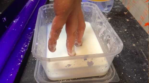 Cuando, la sustancia es un sólido cuando lo mueve, pero tan pronto como lo mantienes todavía se convierte en un lodo licuado.