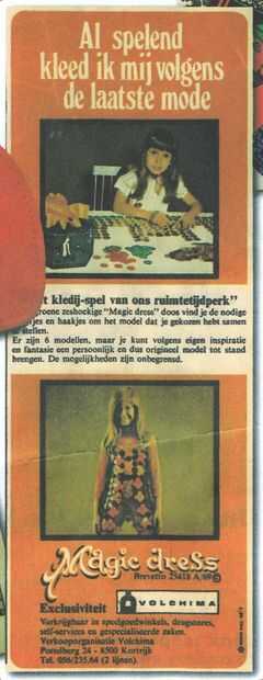Teníamos en casa, pero nuestro sistema se perdió en el tiempo. Cuando recientemente lo redescubrió en un libro sobre cosas de los años 50, 60 70' y 80 ' s, probé si pude encontrar que un viejo situado en algún lugar. El vestido de magia nombre para otros productos y Volchima, la empresa de venta, haber desaparecido no ayuda. Aún no estoy seguro si alguna vez se distribuyó fuera de Bélgica. Al no haber logrado encontrar ninguno, decidí crearla yo mismo, pero alguien sabe donde encontrar un conjunto original, por favor hágamelo saber.