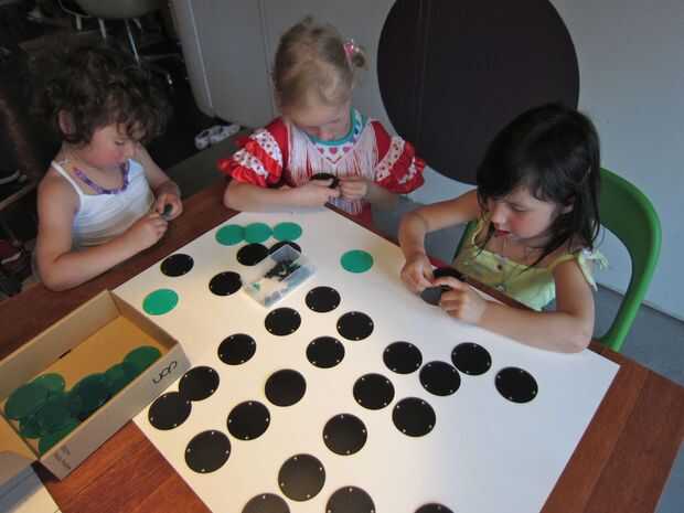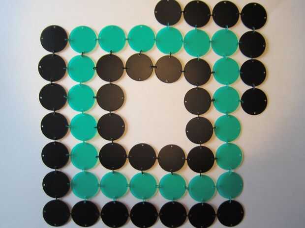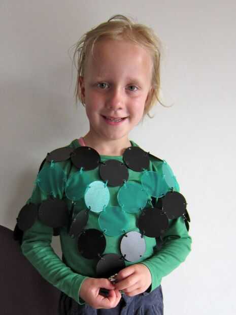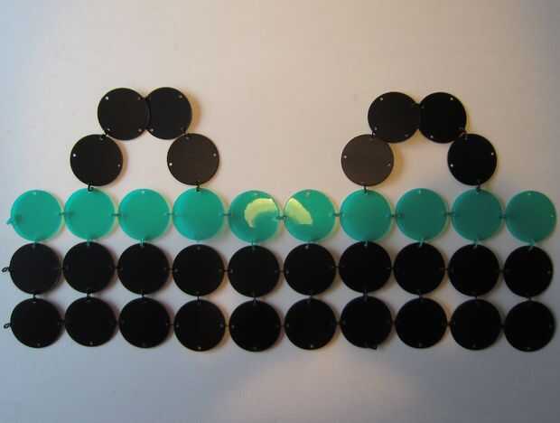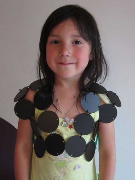 Montaje de los discos y ganchos necesita algunas prácticas y era sólo posible para un paciente de 5 año de edad. Para hacer realmente una prenda de vestir, estos pequeños necesitaban ayuda, pero los niños mayores pueden experimentar por cuenta propia. Estoy mostrando solo algunos modelos básicos que hicimos.