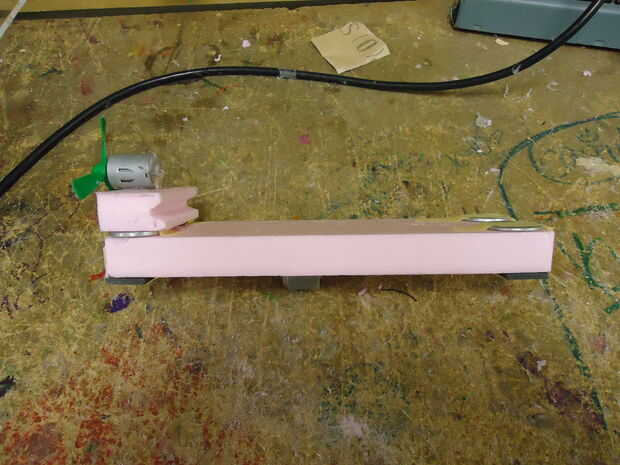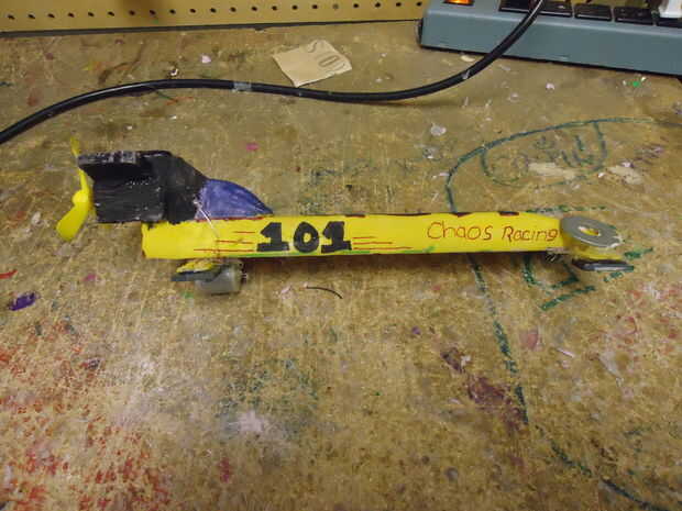 La última cosa que hacer es sujetar el motor y los cables. El motor debe ser lo suficientemente alto para evitar la pista y puede ser situado en la parte delantera o trasera del vehículo, cualquiera que sea el estudiante decide. La primera imagen muestra al coche más básico. Yo no salvo este coche como una versión acabada. Espero que puedan modificar sus coches. La segunda imagen es un ejemplo de un coche modificado. También tengo alumnos que hacen sus coches totalmente fuera de palitos o un híbrido de bastones de espuma de poliestireno y arte.