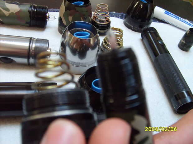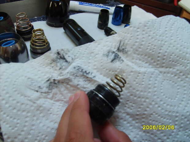 Ahora encontrar los anillos en "O" y limpiar limpia de cualquier suciedad antigua y grasa. Hacer shure para conseguir los hilos de rosca dentro de la linterna también.
