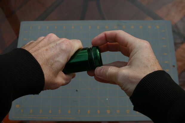 Sacar la tapa de la cola de la linterna. Deberás quitar el resorte y sacar la bombilla de repuesto en la tapa de cola. MagLite es una empresa fresca. Hacen linternas cool con un lugar para almacenar una bombilla de repuesto, que incluye. Como de una empresa que son Chulos, el siguiente paso probablemente anulará la garantía.