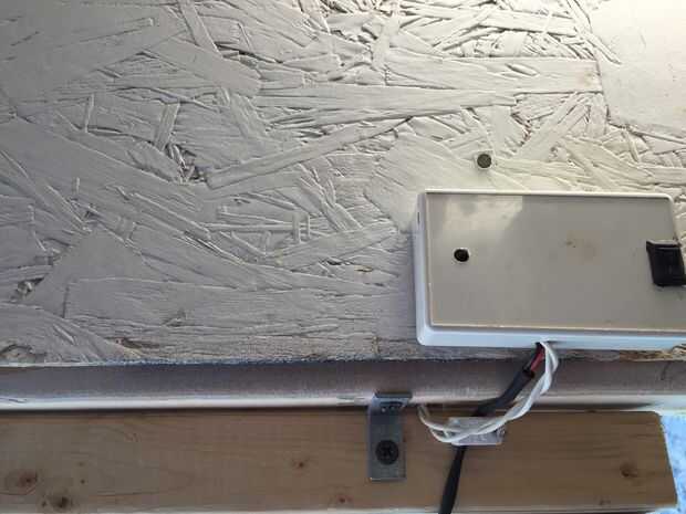 La cerradura constantemente y atado a un circuito normalmente cerrado. Como resultado, una vez que se, estoy atrapado allí hasta que soltar otra vez. Pero en lugar de otro panel de acceso de cableado, había conectado a un interruptor en el circuito a través de una conexión en serie. Se encuentra justo encima de la puerta y es mucho más barato que otro panel. Simplemente el interruptor y abrir la puerta. Jugó con un relé de retardo para que simplemente presione un botón para activar el relé y no tiene que recordar a un interruptor a reiniciar alimentación. Sin embargo, encontré que a veces se va adentro y hacia fuera de la caseta varias veces por minuto en proyectos en el patio y necesitaba una forma para desactivar el bloqueo al hacerlo. Por lo tanto, he dejado el conmutador simple. Como he dicho, simple es generalmente mejor, aunque no es tan frío a veces.