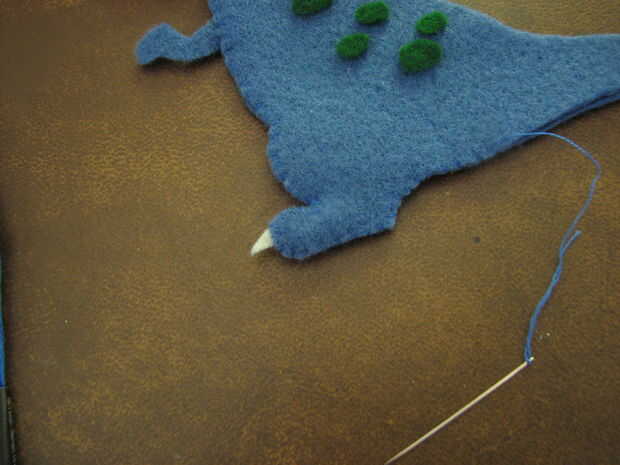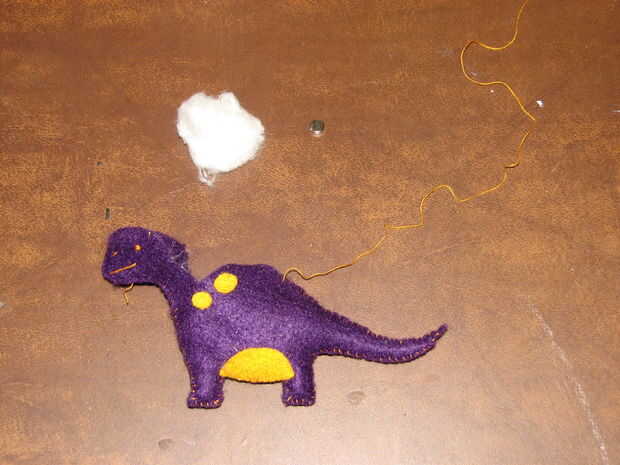Separado una hebra de seda del bordado en cuerpo que empareja o contraste de color. Se usa para coser las dos mitades con una puntada del azote. Llene cada sección con algodón como vas empujando con un borrador de lápiz.