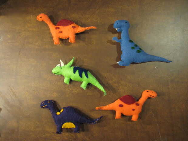 Añadir los colmillos, garras y brazos diminutos para el t-rex como vas. El triceratops tiene un cuerno separado,