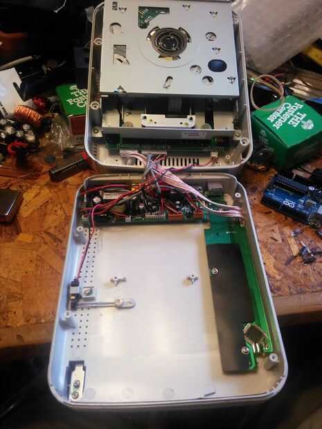 Lookit que! Si tienes oportunidad, enchúfelo e Inserte un CD. ¿Cool, derecho? Te enlazo un vídeo. Ahora tenemos que quitar el tablero con todos los cables que salen de él...