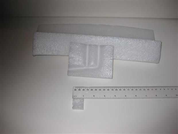 Me encontré con espuma de embalaje caja interna usada para sostener las piezas con seguridad en una caja (no de espuma de poliestireno). La que encontrado o utilizado tiene una sensación cerosa a él.