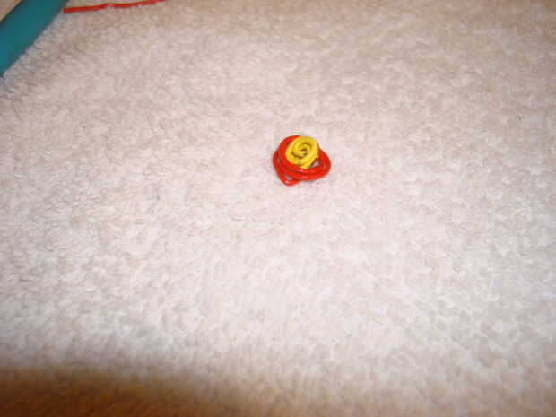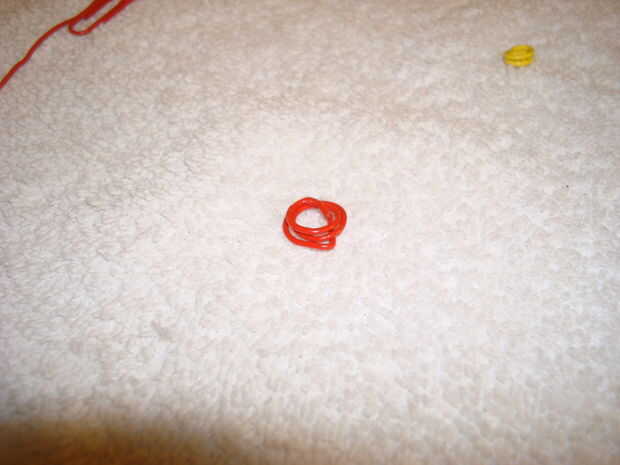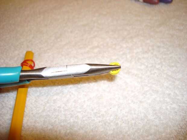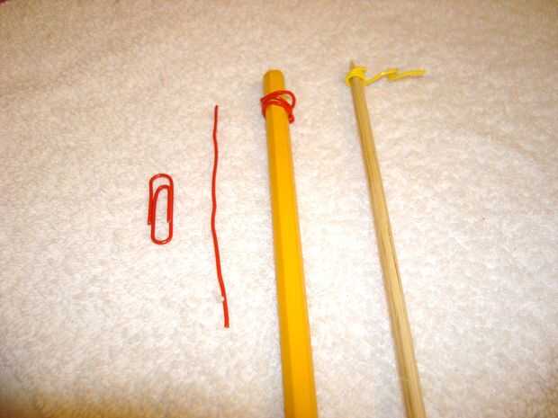 Fije el clip de papel rojo y amarillo alrededor del lápiz y el pincho como se indica.