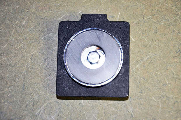 Después de taladrar los agujeros, instale la base magnética en la base no magnéticos usando un perno, arandela de seguridad (probablemente overkill) y una tuerca.