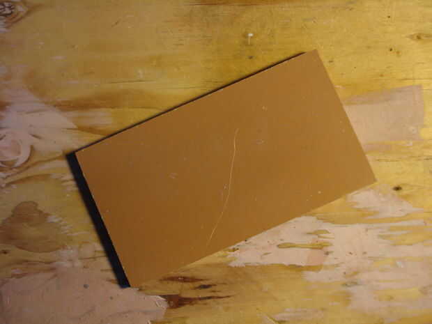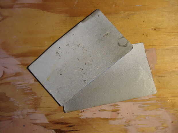 Cortan una o más piezas de metal de hoja para casi cubrir la superficie de la madera prensada. Usé 2 capas. Este material es dejar que el flujo magnético "fluir fácilmente" de un imán a la siguiente, esto aumentará la fuerza que mantiene la base. Pegamento para arriba (con el epoxi) por lo que el metal es por un lado la madera prensada. Utilice abrazaderas y deje que se endurezca bien. Cuando el pegamento ha fijado perfore un orificio de montaje de la lámpara entre el espacio de los imanes.