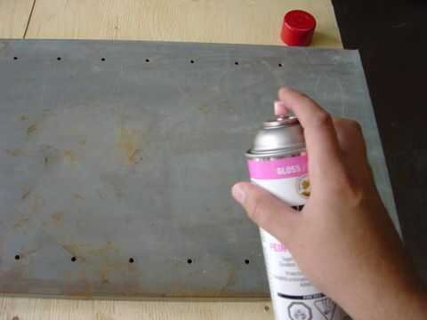utilicé el cepillo de alambre y papel de lija para desprender el óxido en el estante. Después de hacer esto me di cuenta de que la pintura de las estanterías puede haber sido pintura con plomo. Limpié mi tienda realmente bien después, pero debo han tomado algunas precauciones previas extras. Siga estos pasos