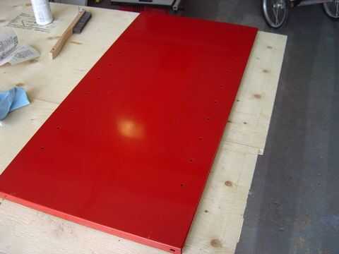 Siguiendo las especificaciones del fabricante, había cubierto los estantes con la pintura antioxidante en capas lisas bonitas. Ayuda a decir smoooooooth a ti mismo mientras pinta. :)