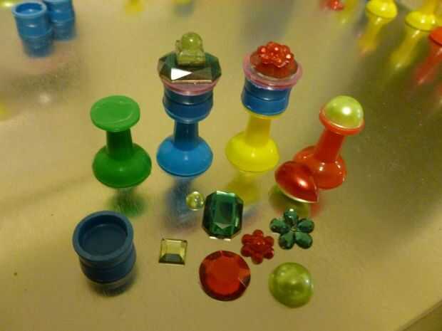 Los peones eran las más sencillas para hacer.  Todo lo que necesitaba era frotar la parte superior de las bases magnéticas y la parte inferior de un domo en forma de "gems" papel de lija para dar el pegamento que se adhiere a y luego les había cementado en su lugar. Habrá 16 peones. 8 blanco y 8 para el negro.