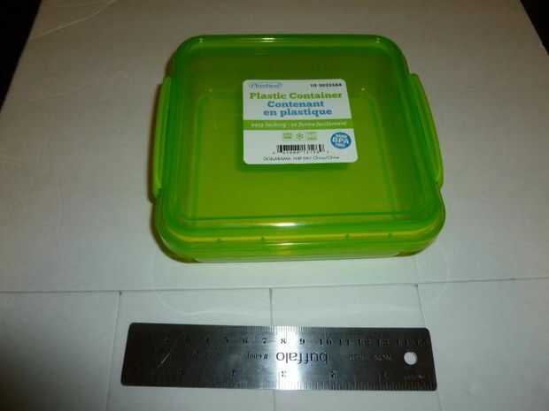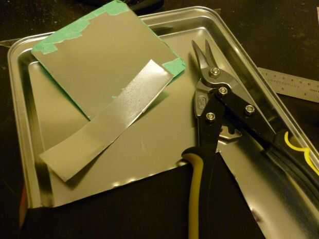 Medí el recuadro en la parte superior del envase de plástico verde y copia la forma en la bandeja para hornear. Luego usé un par de tijeras para cortar la forma.