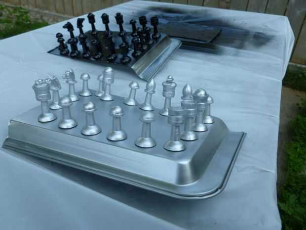 ejercicio ajedrez - jugar mientras usted está parado. También, pensé que sería bueno poder mantener mi tablero de ajedrez sin ocupar espacio valioso, así que hice un montaje magnético para el tablero de ajedrez, por lo que pude poner en el refrigerad