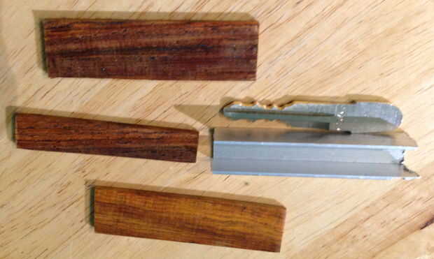 Cortar 3 tramos de madera laminar para el aluminio. La pieza central debe ser sólo un poco más ancha que la base del ancho de canal "U" (es decir, unos 14mm). Las piezas laterales deben ser un poco más anchos que la altura de la "U" más el espesor de la pieza central (es decir, unos 17-18mm).