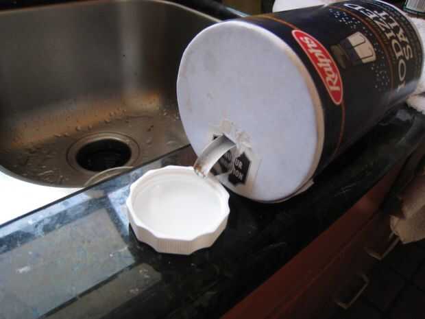 Llenar la tapa blanca con agua y agregue una pizca de sal.