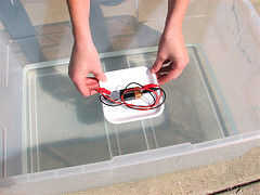 Mod un radiocontrol baratos barco en un vehículo RC magnetohidrodinámica.Este diseño sirve como prueba del principio para modding un vehículo RC en MHD. En lugar de ser un diseño de performance, viaja a una velocidad sorprendente de varios pies por m