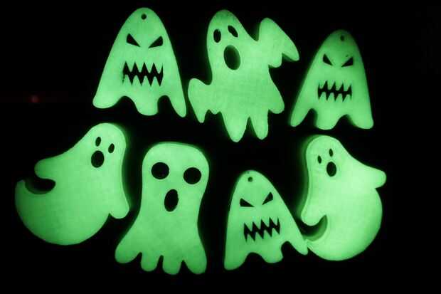 Sugerencia: Como alternativa, también puede perforar pequeños agujeros en la parte superior de los tres fantasmas de la"Simple fantasma" y transformarlos en llaveros glowy.