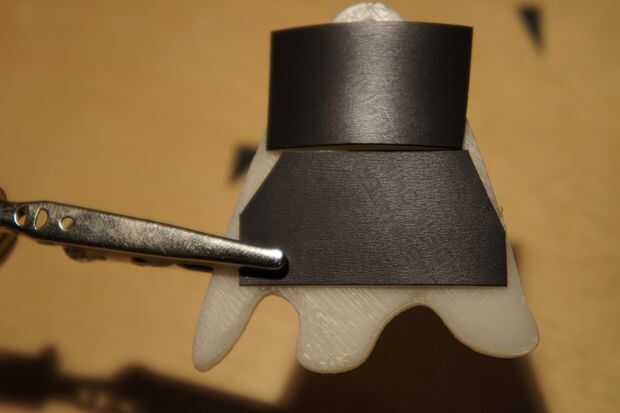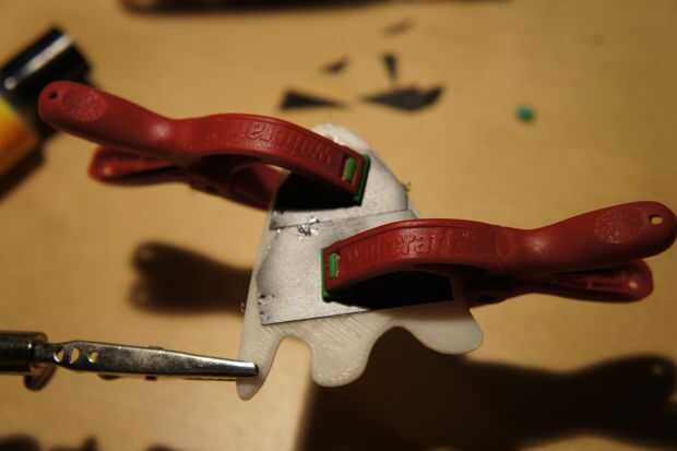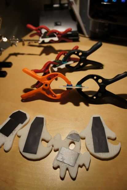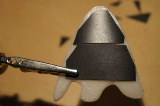 Pegue la tira magnética o el imán para el espíritu. Preferimos utilizar pegamento universal (aunque tarda un poco más en secar luego superglue), como mucho menos sucio y más perdonar (es decir, los dedos no pegados) de cianoacrilato. Si el pegamento universal es su opción, colocando algunas abrazaderas en el fantasma pegado ayudará lograr perfecta adherencia.