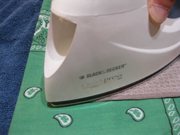 Hierro en! Mis instrucciones dijeron 6 segundos para tejidos ligeros y 8 segundos para telas gruesas. Se trataba de una tela muy ligera, así que fui con 5-ish segundos.