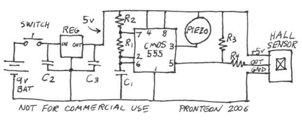 C1 - .01uF (establece el tono, mayor valor = pitch más bajo)