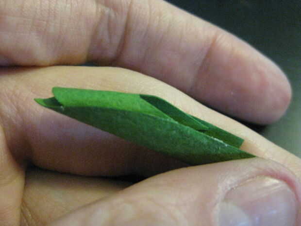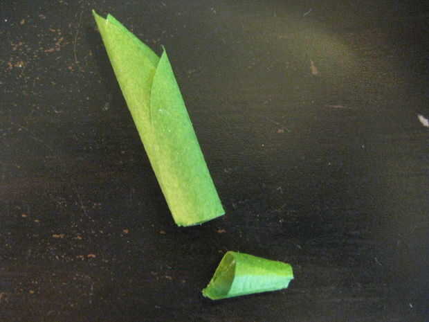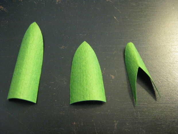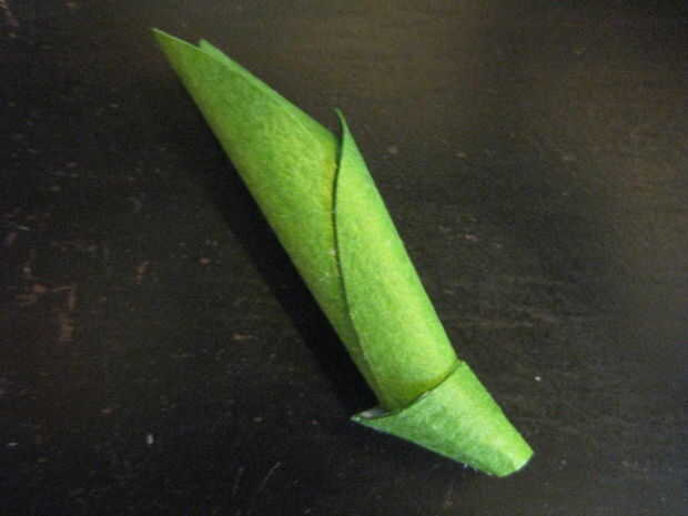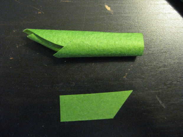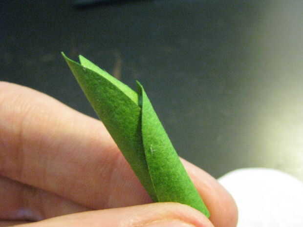 Cada brote consiste en cuatro pedazos de papel verde, basta con ver las fotos, son mucho más ayuda que cualquier cosa que voy a escribir aquí. Hacer tantos como quieras, creo siete u ocho.