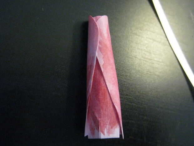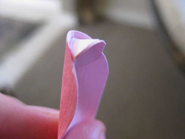 Pegar un pétalo en el cono de color rosa, una vez que seque el pegamento los otros pétalos a él. Para cerrar la parte inferior de la yema que hice un trabajo bastante duro de meter e insistencia mientras la capa de pegamento. No importa si es feo, se cubrirán para arriba.
