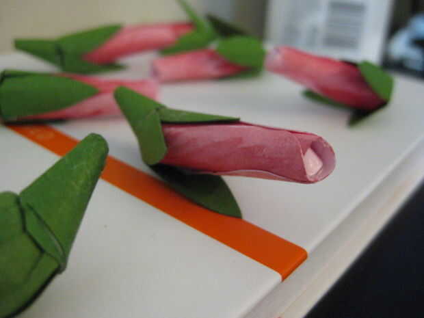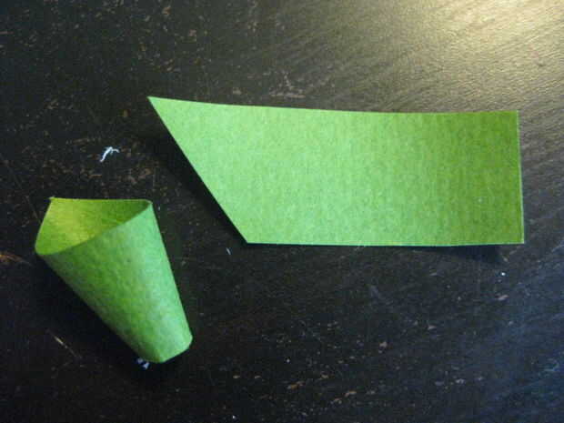 Corte de cintas de papel verde y pegarlos para que vea como poco cono en las fotos uno y dos. Agregar el pegamento!