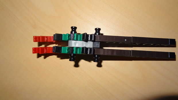 Killerk ha publicado fotos de su magnum pero nunca publicada el instructable así que aquí está.Paso 1: Crear el mango 1. conectar diez conectores verdes con una barra roja y agregar las piezas mostradas2. Añadir 5 conectores verdes y acople un conect