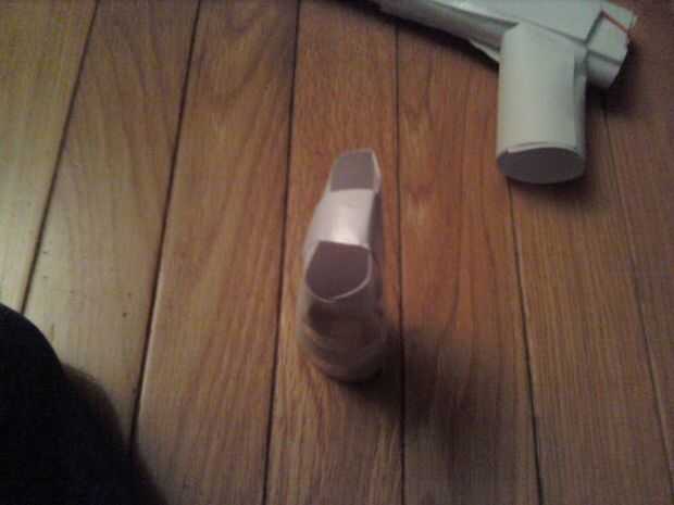 esto no funciona solo tiene la bulets.you toma un paz de desecho de papel y ponerlo en el botom de la segunda mitad de la manija.