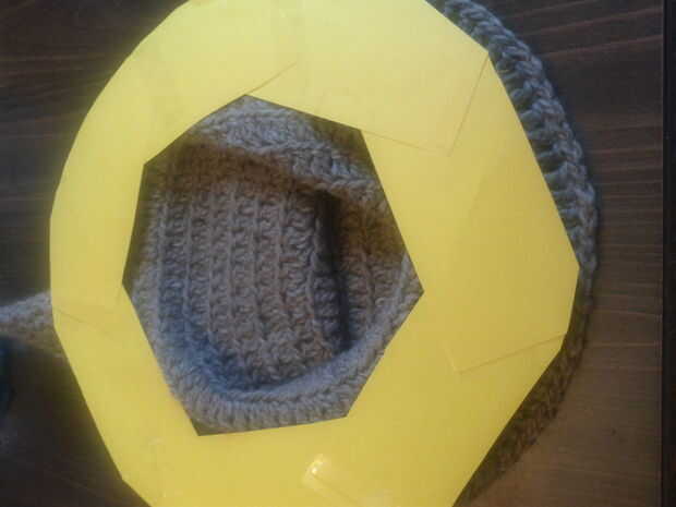 Para el borde del sombrero dc en el siguiente 5 puntadas y el aumento en el punto 6. Hacer esto hasta que el borde del sombrero es la longitud deseada que usted desea.