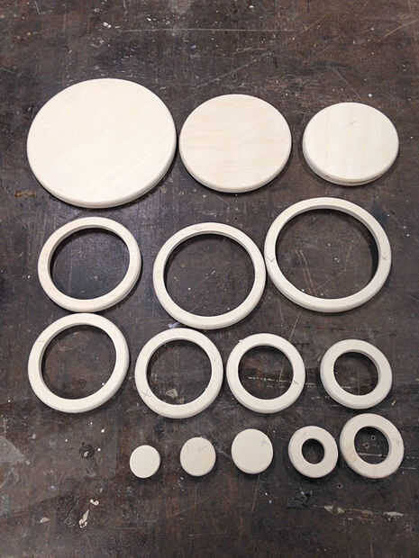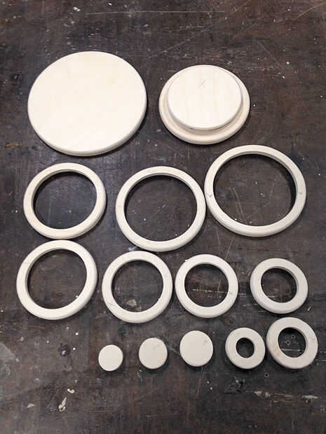 Usé el ranurador del CNC (Control numérico computarizado) en el espacio creador pertenecen a, a cortar mis anillos. Si no tienes acceso a uno, utilice una sierra caladora u otro método para cortar sus anillos y círculos. No tengo gran sugerencias para cómo hacer esto, pero hay varios buenos instructables en círculos de corte con varias herramientas.