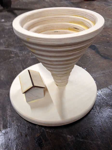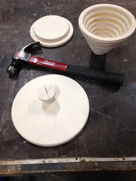 Para armar el tornado sólo necesita algún pegamento para madera y un clavo o tornillo.
