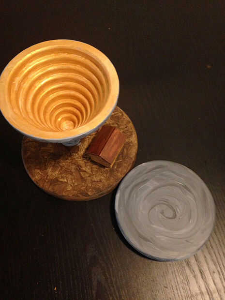 Una vez que el pegamento esté seco sólo necesita pintar. Usé marrones y grises de la granja y tornado. Y luego pinté el interior oro. También podría pintar el interior arco iris de colores.